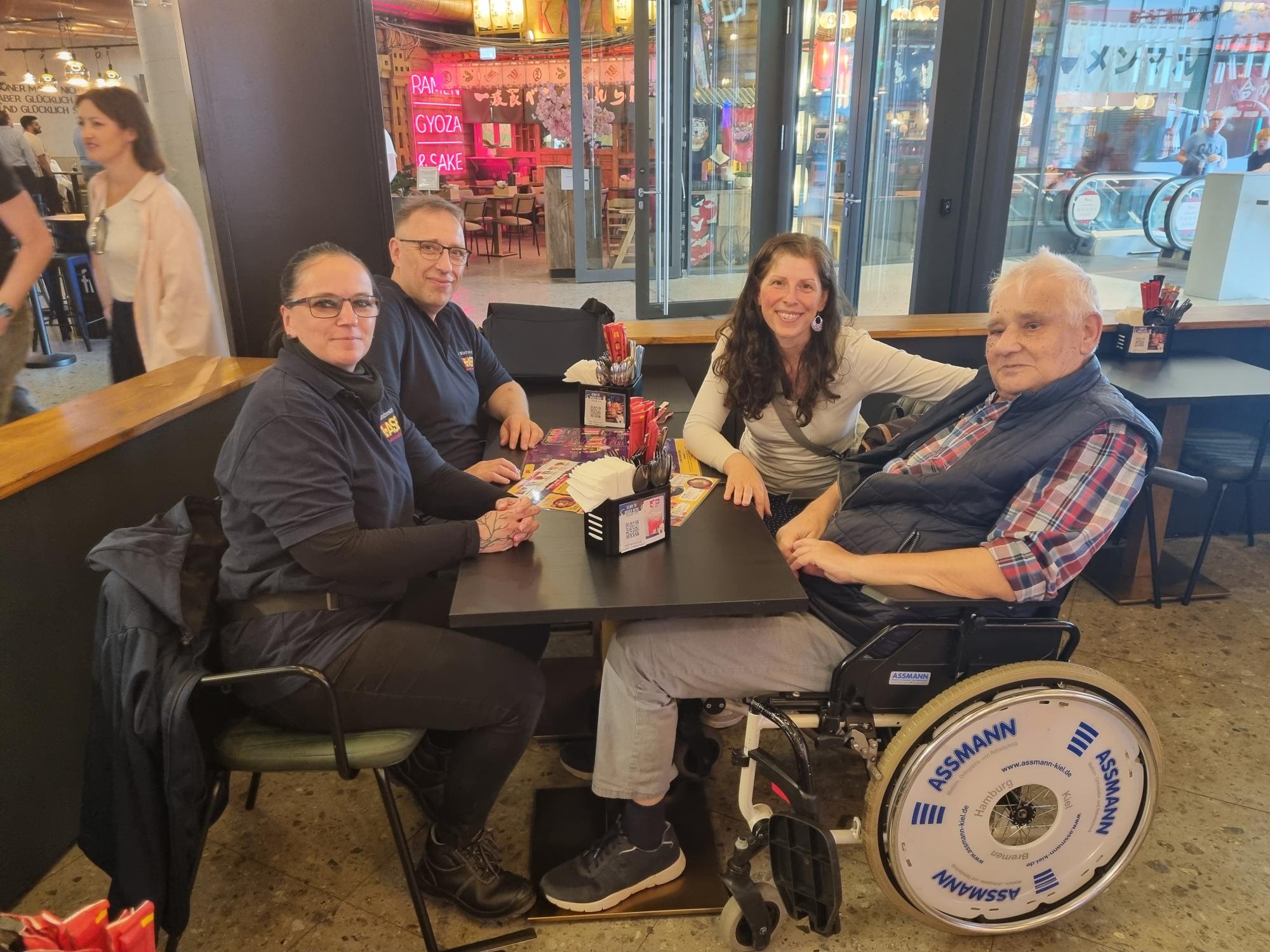 Gesagt, getan. Wir fuhren HG im Rollstuhl an den Geschäften vorbei, blieben an den Schaufenstern stehen und bestaunten die Auslage. Später fuhren wir in die Etage, in der die Restaurants zu finden sind. HG wollte gern chinesisch essen, also suchten wir uns schöne Plätze.
