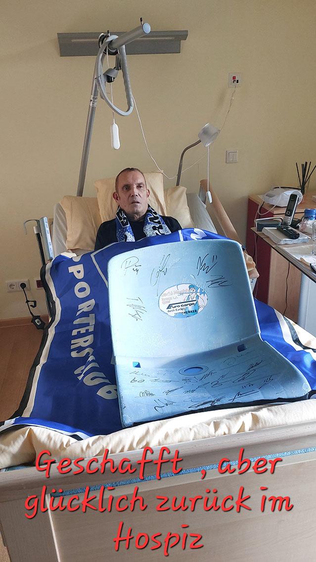 An diesem Morgen sollte die Fahrt nach Hamburg in das Volksparkstadion zum Fußballspiel SV gegen Elversberg gehen. Fröhlich wurden wir von den Mitarbeiter:innen des Albertinen-Hospiz in Norderstedt begrüßt. Sie führten uns zu einem echten HSV-Fan und seiner Frau, die uns mit strahlenden Augen begrüßten. Sie freuten sich sehr, dass der ASB den Wunsch von Herrn M. erfüllen konnte.