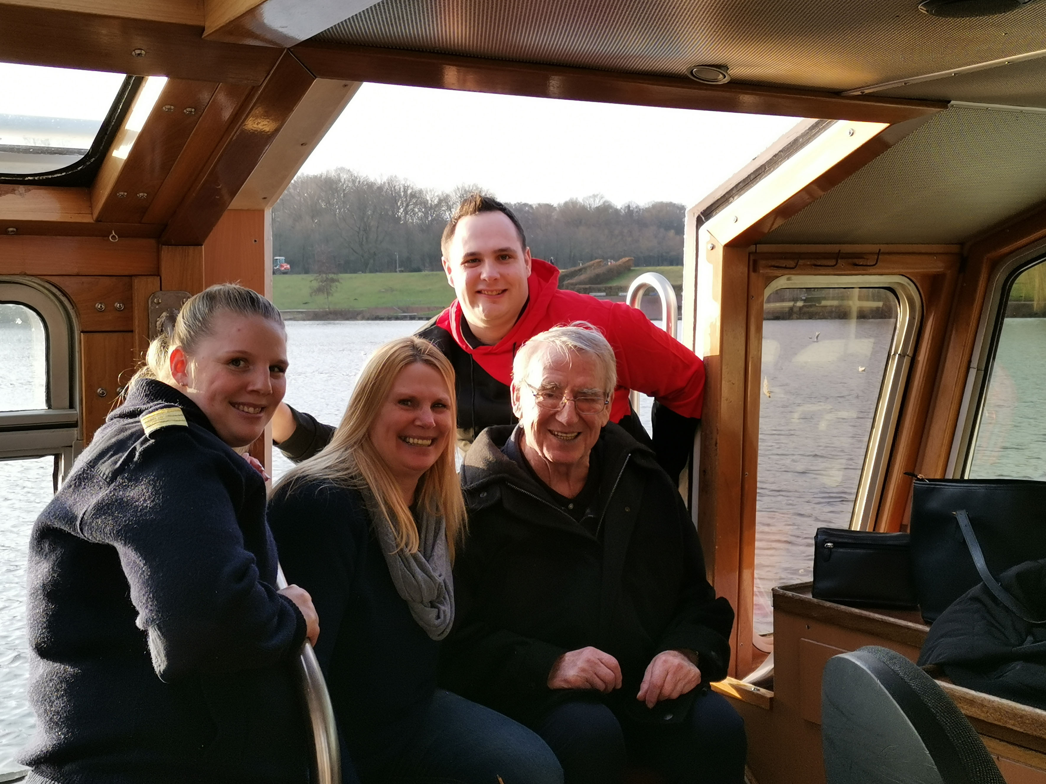Danach stand das Highlight des Tages bevor: Eine zweistündige Alsterrundfahrt mit der Enkeltochter, welche Bootskapitänin ist. Aufgrund dessen hatten wir das Schiff ganz für uns alleine, was für uns alle eine neue Erfahrung war. Während die Enkeltochter noch ihre Uniform anzog, machten wir uns mit Herrn S. schon auf den Weg ins Boot, welches bereits eingeheizt war. Die Tochter hatte noch diverse Süßigkeiten und Getränke mitgebracht, so dass es bei dem tollen Wetter ein schöner Nachmittag werden MUSSTE.