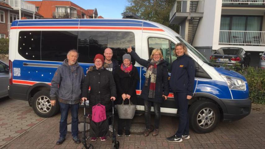 Nach regenreichen Tagen meinte es Petrus mal wieder gut mit uns. Im Elmshorner Johannis Hospiz wurden unsere Wunscherfüller Ute Uhrbrook und Helmut Hollstein schon freudig von der Familie W. erwartet. Die letzten Sachen wurden gepackt, und schon ging es los, musste doch ein Zeitplan eingehalten werden, denn Frau W. hatte sich mit einer Freundin der Familie am Strand verabredet. Nach einem kurzen Telefonat klappte auch alles. Die 63-Jährige erfreute sich im Kreis ihrer Lieben am schönen Wetter und wollte möglichst dicht ans Wasser, auch wenn die Füße dabei nass würden. Ihr Rollator war eine große Hilfe, so dass sie aus eigener Kraft dorthin gelangen konnte.