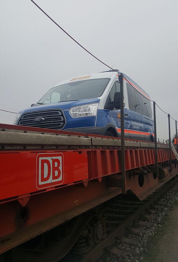 Um kurz nach 7 in der Früh ging die Reise los. Unser Fahrgast nebst Frau nahm im Wünschewagen Platz, seine drei Kinder, begleitet von Anja Ihben, im Mannschaftstransporter der FF Norderstedt. Da das erste Ziel Niebüll frühzeitig erreicht wurde, blieb noch Zeit für eine kleine Stadtrundfahrt. Während die drei Kinder im Regionalexpress nach Sylt fuhren, nahm der Rest der Gruppe mit dem Wünschewagen den DB Sylt Shuttle, welcher uns mal wieder hin und zurück komplett kostenlos beförderte. Dank bester Plätze genoss unser Fahrgast den freien Blick nach hinten raus.