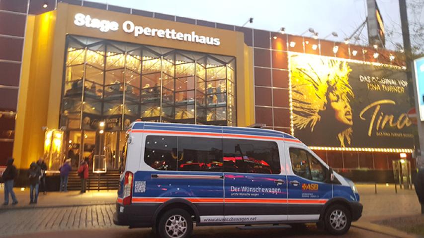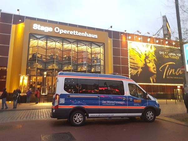 Um rechtzeitig am Theater auf der Reeperbahn zu sein, sind wir etwas früher losgefahren. Durch die großen Panoramafenster des Wünschewagens war es nun möglich, bei einbrechender Dunkelheit die schillernden Gebäude auf der Reeperbahn zu betrachten. Wir durften über den Seiteneingang ins Theater, um in der vierten Reihe Platz zu nehmen und dem wunderschönen Musical zu folgen.