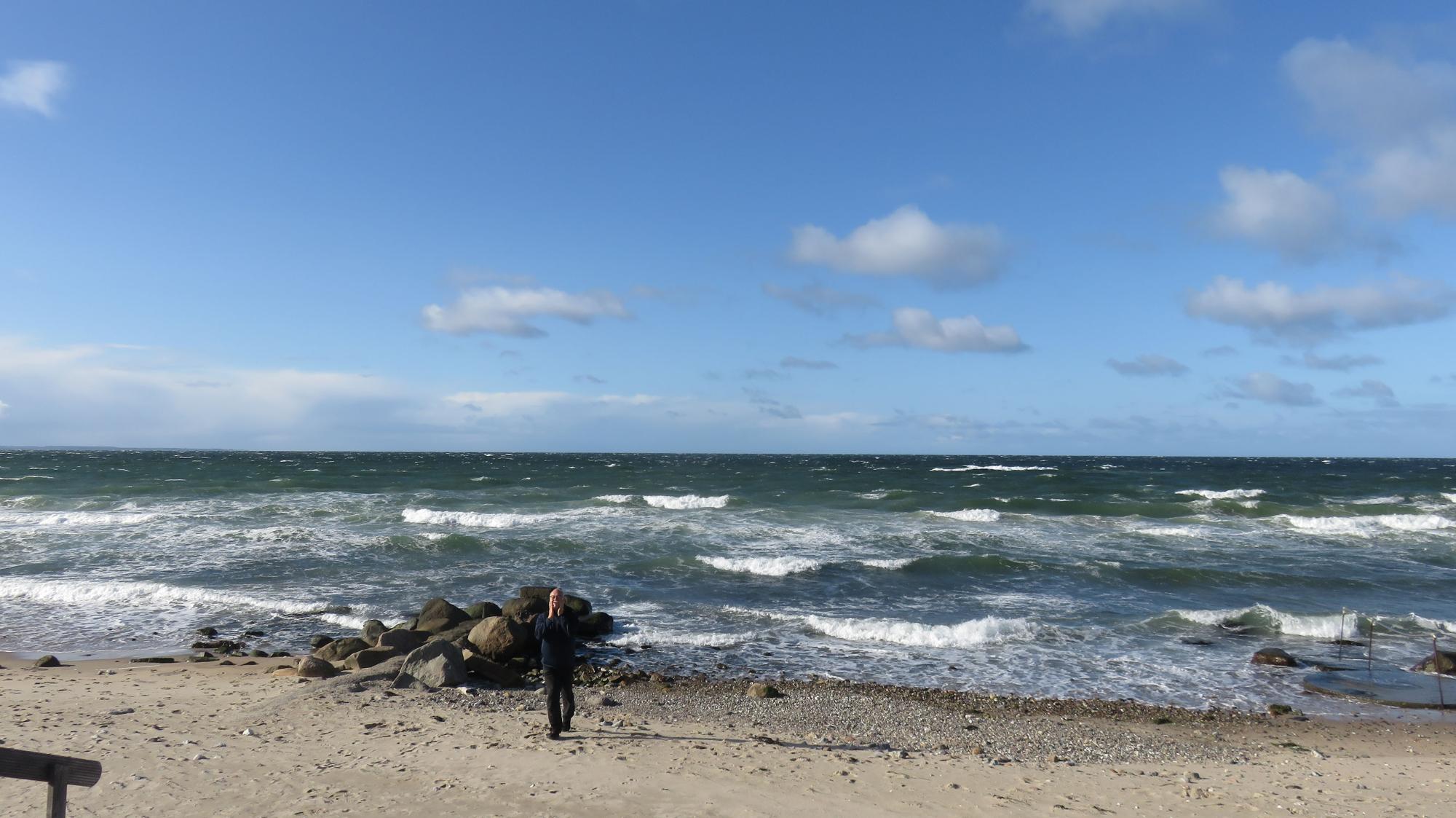 Wir sind noch mal an den Strand gefahren und sahen aufgrund des starken Windes viele große Wellen, die an den Strand rollten.