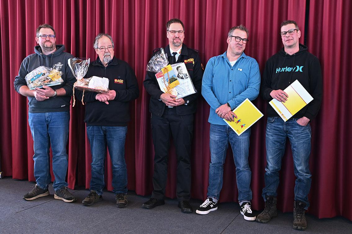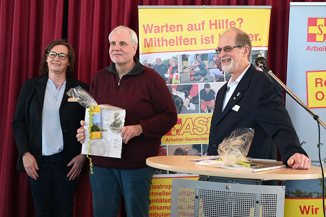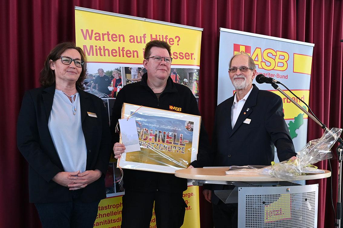 Für 30-jährige aktive Mitgliedschaft wurden Marcel Graf und Norman Hielscher mit der silbernen Ehrenplakette des ASB ausgezeichnet. Ein besonderer Dank für vielfältiges ehrenamtliches Engagement wurde Eike Keilwerth, Wolfgang Röhr und Monika Asbahr (in Abwesenheit) ausgesprochen. Aus verschiedenen ehrenamtlichen Ämtern verabschiedet wurden die ehemalige Jugendleiterin Kristina Mohr, SEG-Leiter Michael Mohr sowie die Katastrophenschützer Thomas Sander und Andreas Grunert. Hans Jörg Will wurde für seine frühere berufliche Tätigkeit als Leiter Rettungsdienst gedankt, die er 10 Jahre lang bis Juni 2023 wahrgenommen hatte.