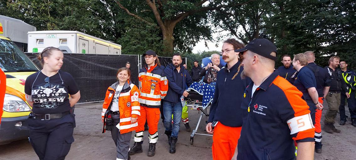 Unter den vielen Kommentaren und Nachrichten waren auch einige aus der Blaulichtfamilie. Jenen Menschen, die wie wir im Rettungsdienst arbeiten. Und so telefonierte ich Donnerstagabend mehrfach mit Tim, der mit seinen Kollegen hinter der Harder-Bühne für die Koordination des Rettungsdienstes zuständig ist. „Wir finden eine Lösung, Michael und seine Familie werden morgen Iron Maiden sehen!“