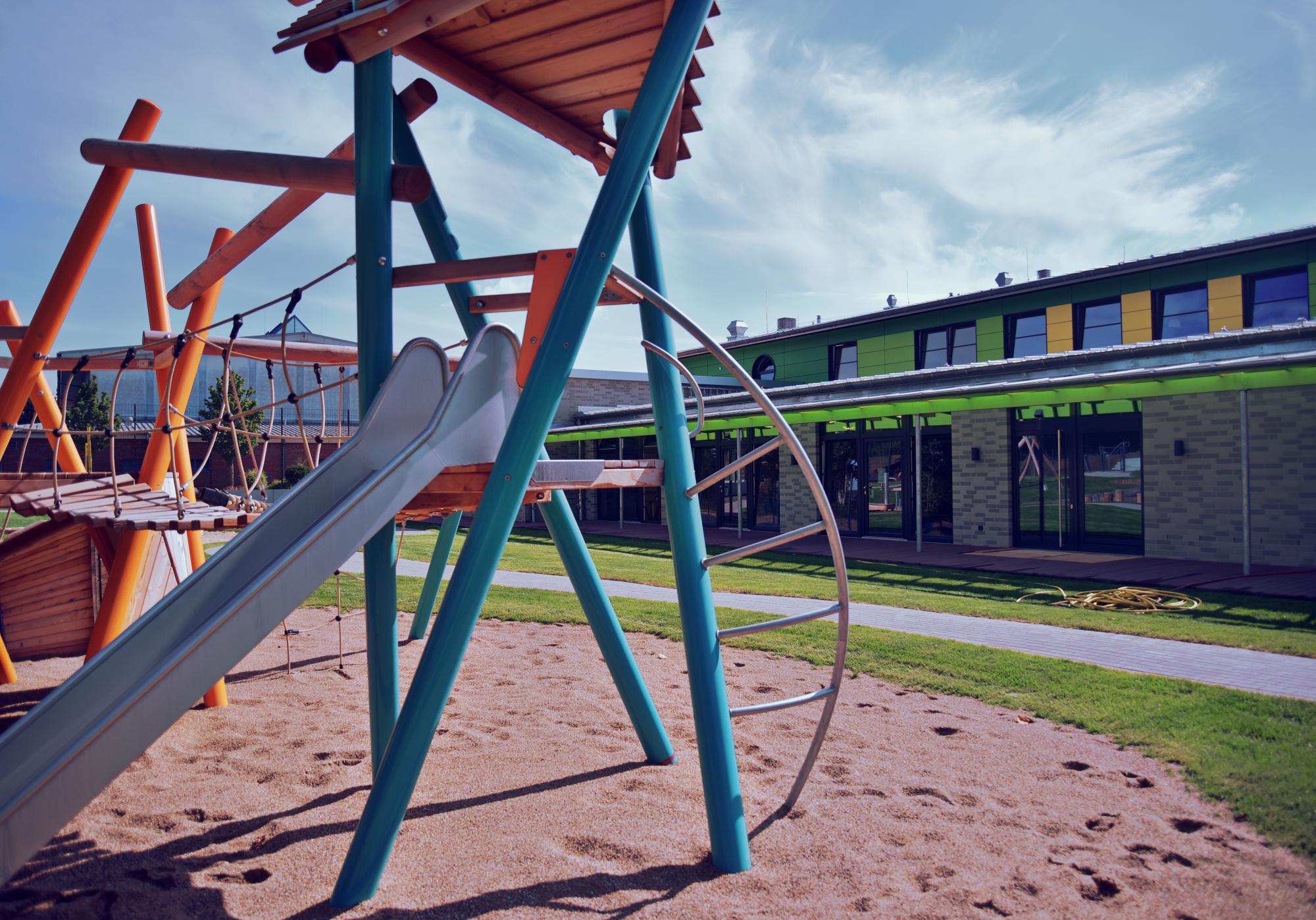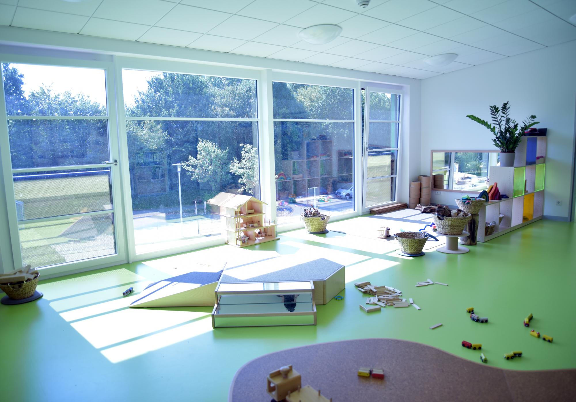 Das neue Gebäude mit hellen anregenden Funktionsräumen für Kindergarten- und Krippenkinder bietet viel Raum zur Selbstbildung. Orientiert am offenen Konzept und der Reggio-Pädagogik haben die Kinder die Möglichkeit, zu spielen, zu entdecken, sich auszuprobieren, sich mitzuteilen und mitzuentscheiden, um für das große Spiel des Lebens vorbereitet zu sein.
